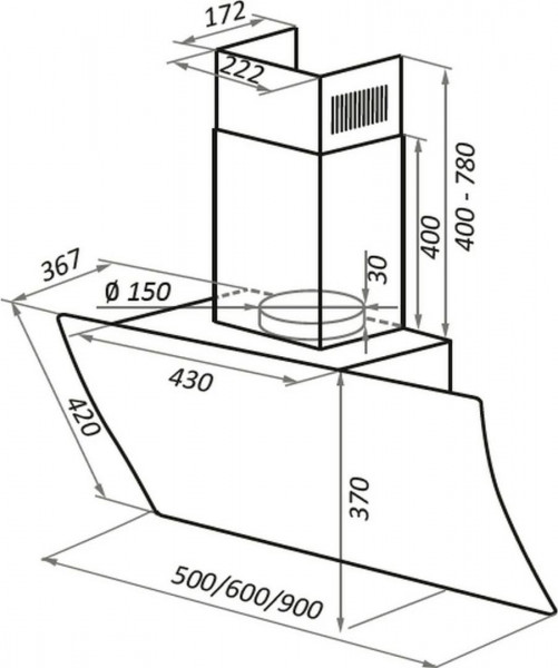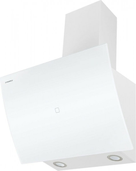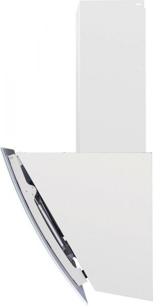 Дизайнерская наклонная настенная вытяжка шириной 60 см белого цвета крепится на стену над варочной панелью. Оптимальное решение для кухонь площадью до 35 кв.м. Работает в двух режимах – отвода (при подключении вытяжки к системе вентиляции) и рециркуляции (при использовании сменного угольного фильтра в вытяжке).