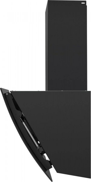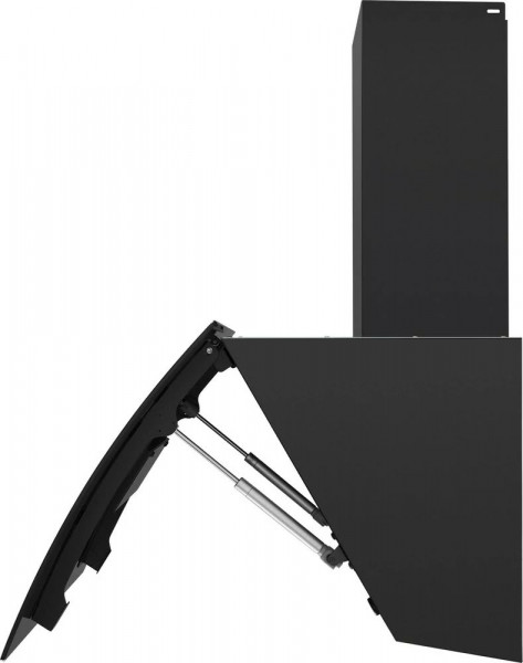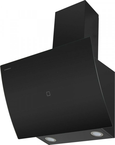 Дизайнерская наклонная настенная вытяжка шириной 60 см черного цвета крепится на стену над варочной панелью. Оптимальное решение для кухонь площадью до 35 кв.м. Работает в двух режимах – отвода (при подключении вытяжки к системе вентиляции) и рециркуляции (при использовании сменного угольного фильтра в вытяжке).