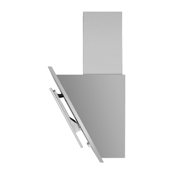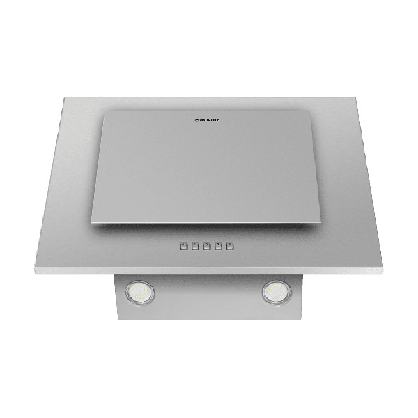 Корпус выполнен из нержавеющей стали. Откидная панель серебристого цвета из глянцевого закаленного стекла скрывает многослойный алюминиевый жироулавливающий фильтр, который легко снимается и полностью разбирается для чистки. Загрязненный воздух втягивается по периметру откидной панели.
