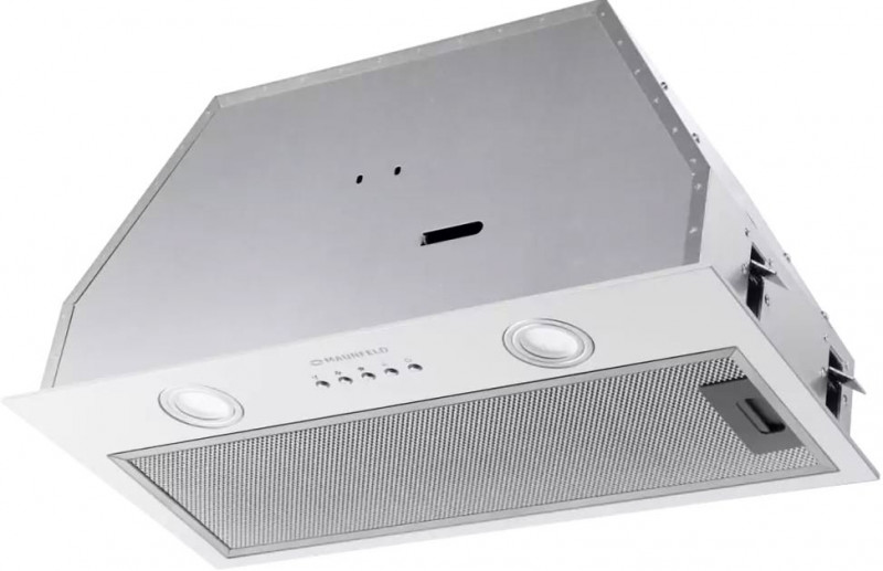 - Классическая встраиваемая кухонная вытяжка шириной 60 см подойдет для большой кухни. Модель монтируется в навесной шкаф над поверхностью плиты. Может использоваться для отвода воздуха из помещения при подключении к системе домовой вентиляции или очищать воздух с помощью сменного угольного фильтра.