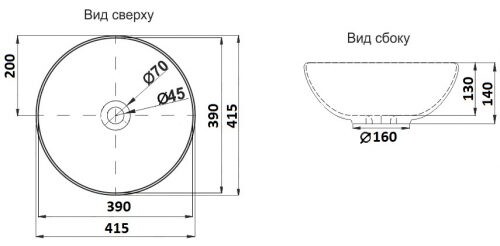 Круглая накладная модель для монтажа на столешницу. Отверстие для смесителя и отверстие для перелива не предусмотрено.
