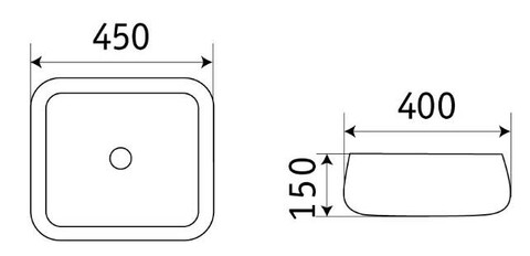 Прямоугольная накладная модель для монтажа на столешницу. Отверстие для смесителя и отверстие для перелива не предусмотрено.