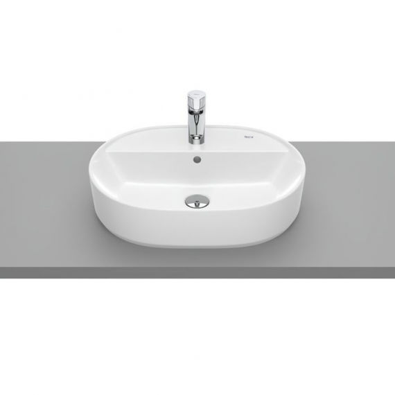 Овальная накладная модель для монтажа на столешницу. Отверстие для смесителя и отверстие для перелива не предусмотрено.