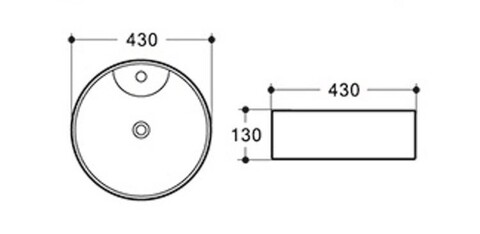 Круглая накладная модель для монтажа на столешницу. Без перелива и с отверстием под смеситель.
