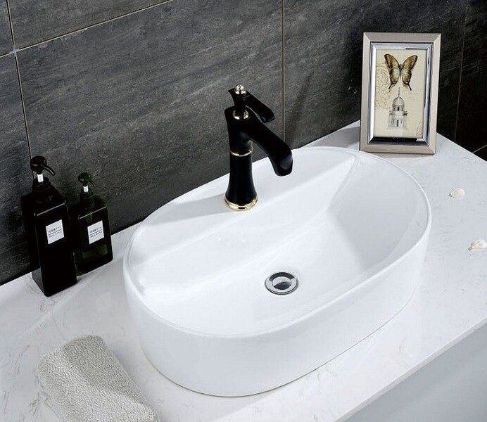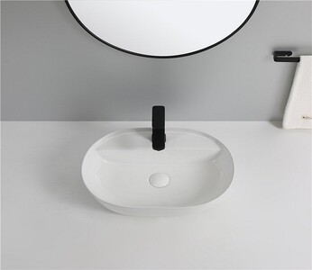 Овальная накладная модель для монтажа на столешницу. Без перелива и с отверстием под смеситель.