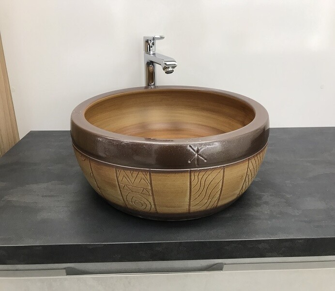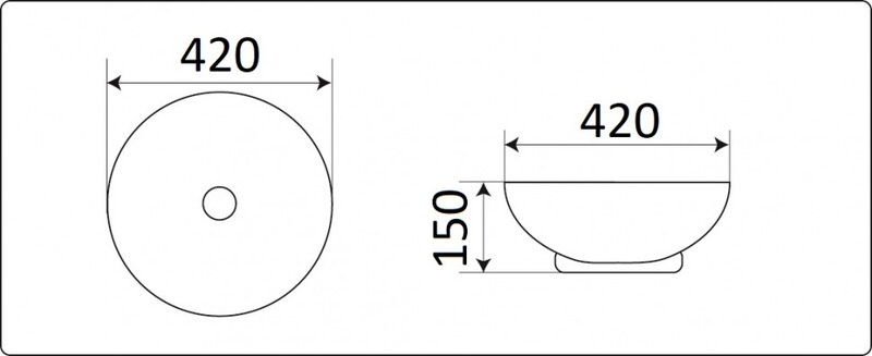 Круглая накладная модель для монтажа на столешницу. Отверстие для смесителя и отверстие для перелива отсутствуют.