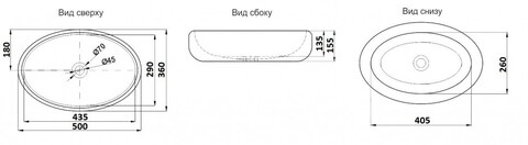Овальная накладная модель для монтажа на столешницу. Без перелива и отверстия под смеситель.
