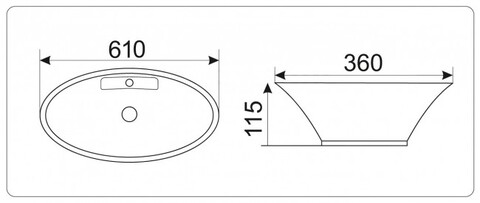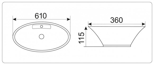 Овальная накладная модель для монтажа на столешницу имеет 1 готовое отверстие для смесителя и без отверстия для перелива.