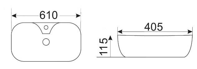 Прямоугольная накладная модель для монтажа на столешницу имеет 1 готовое отверстие для смесителя и без перелива.