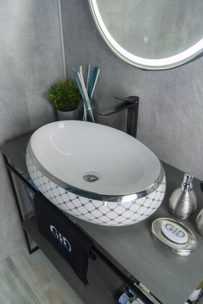 Умывальник Gid Nc262 - изящная раковина овальной формы в классическом белом цвете с элегантным серебряным узором, выглядит стильно и презентабельно. Модель предназначена для установки на столешницу. Умывальники Gid изготовлены из высококачественной керамики, что обеспечивает их длительный срок службы и сохранение цвета поверхности на длительное время.