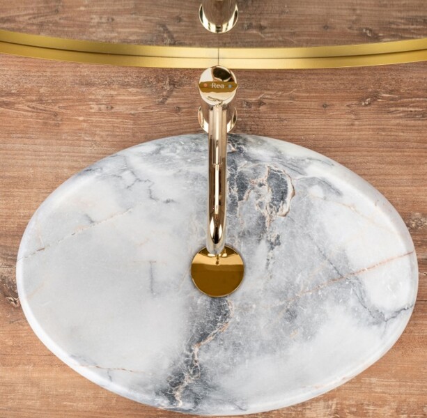 Умывальник Rea Linda Granit U8567 48,5х34. Уникальный дизайн, эргономичная форма, естественный природный цвет - только вы будете знать, что это не камень, а высококачественная санитарная керамика, долговечная и простая в уходе.