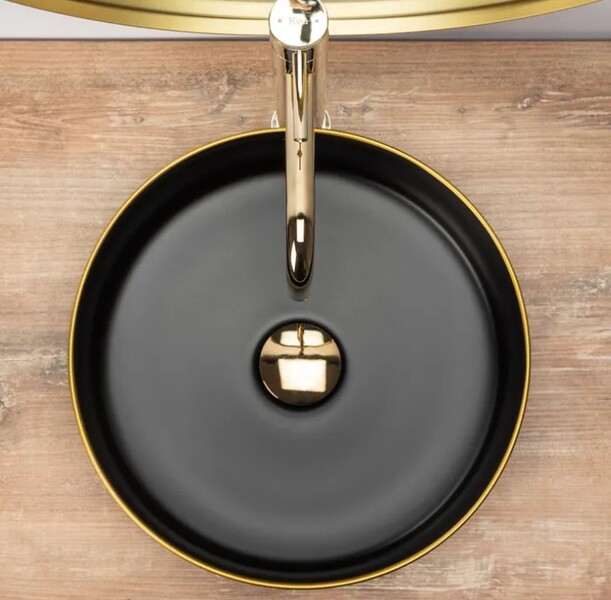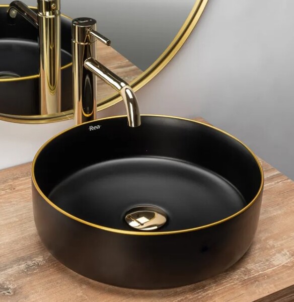 Купить накладной умывальник Rea Sami Black matt Gold Edge U0595 36х36 вы можете в нашем интернет-магазине по низкой цене и выгодной доставкой по Минску и всей Беларуси. У нас работают грамотные специалисты, которые проконсультируют вас по выбору всей сантехники и комплектующих. В нашем магазине только сертифицированная продукция с заводской гарантией от производителя.