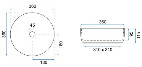 Отверстие под смеситель и переливное отверстие отсутствуют. Монтаж производится на столешницу. Донный клапан приобретается отдельно.