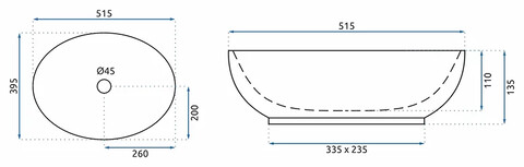 Отверстие под смеситель и переливное отверстие отсутствуют. Монтаж производится на столешницу. Донный клапан приобретается отдельно. Модель прекрасно впишется как в современный, так и в классический интерьер ванной комнаты.