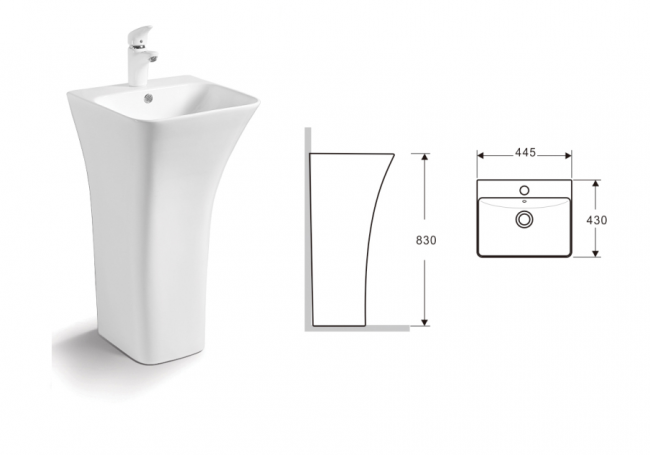 CeramaLux G315 - современная раковина в стильном белом цвете с готовым отверстием под смеситель, предназначена для напольного монтажа. Модель изготовлена из высококачественного фаянса, что гарантирует прочность умывальника и сохранение цвета поверхности на длительное время.