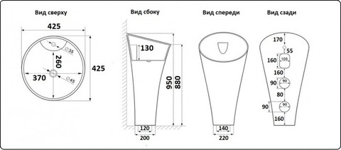 - диаметр слива 45 мм.