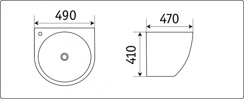 Умывальник CeramaLux 500F - подвесная модель полукруглой формы с готовым отверстием для смесителя и отверстием для перелива.