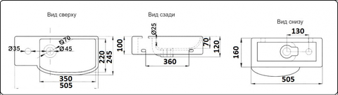 Умывальник CeramaLux 7947CR - подвесная модель прямоугольной формы с готовым отверстием для смесителя и отверстием для перелива.
