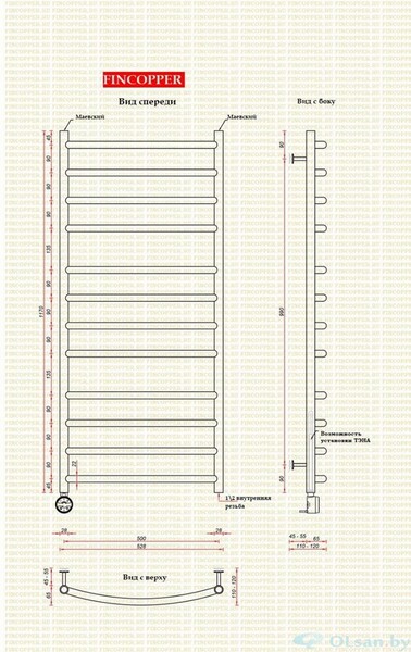 Купить водяной полотенцесушитель Fincopper FC 1170х500 черный RAL 9005 с нижним подключением вы можете в нашем интернет-магазине по низкой цене и выгодной доставкой по Минску и всей Беларуси. У нас работают грамотные специалисты, которые проконсультируют вас по выбору всей сантехники и комплектующих. В нашем магазине только сертифицированная продукция с заводской гарантией от производителя.