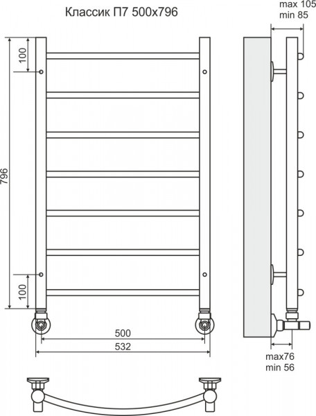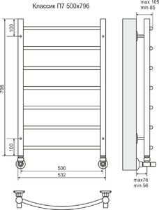 Полотенцесушитель Terminus Классик Эконом с наружней резьбой П7 500х796 идеален для ежедневного использования, он позволяют сушить большое количество одежды, а его скромный и лаконичный дизайн отлично дополнит обстановку комнаты.