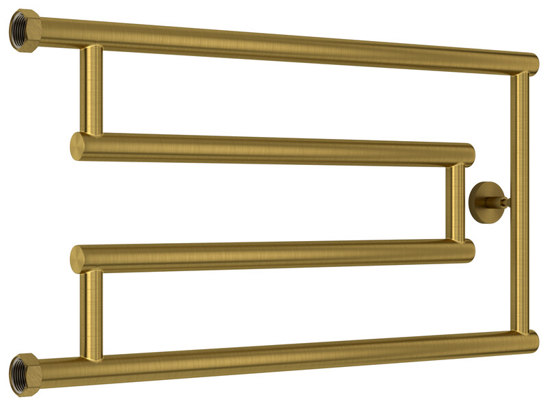 Водяной полотенцесушитель Сунержа High-Tech model "G+" Состаренная латунь предназначен для подогрева и сушки полотенец, а также для обогрева ванных комнат в квартирах, коттеджах, частных домах. Модель оснащена четырьмя перекладинами для удобного использования. Изделие выполнено из нержавеющей стали AISI 304 L, отличающейся прочностью, долговечностью и устойчивостью к перепадам температур.