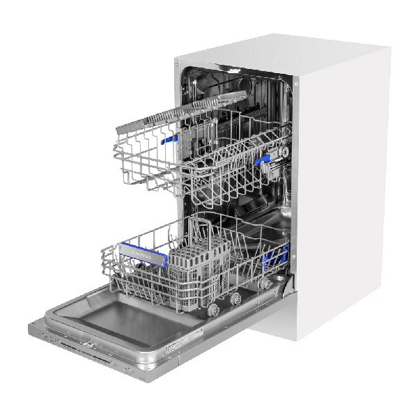 Узкая встраиваемая посудомоечная машина шириной 45 см на 9 комплектов посуды. Внутренняя поверхность выполнена из нержавеющей стали толщиной 0.6-0.8 мм, что обеспечит долгий срок службы при активном использовании.