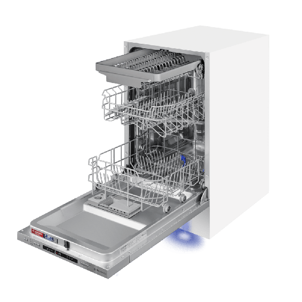 MAUNFELD MLP45130 Light Beam— это узкая модель, шириной 45 см (вместо классических 60 см), но весьма вместительная. За раз она может вымыть сразу много посуды, до 9 комплектов — это оценят в больших семьях, а также те, кто любит готовить, часто принимает гостей.