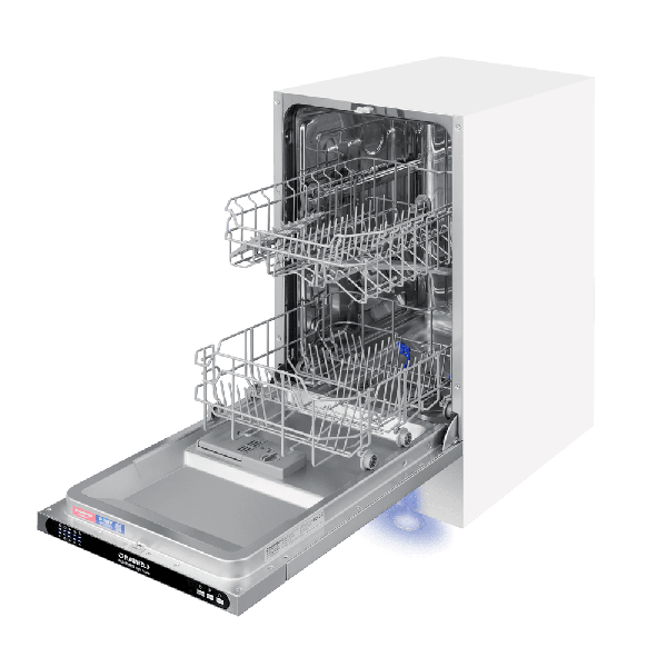 MAUNFELD MLP4529A01 Light Beam— это узкая модель, шириной 45 см (вместо классических 60 см), но весьма вместительная. За раз она может вымыть сразу много посуды, до 9 комплектов — это оценят в больших семьях, а также те, кто любит готовить, часто принимает гостей.