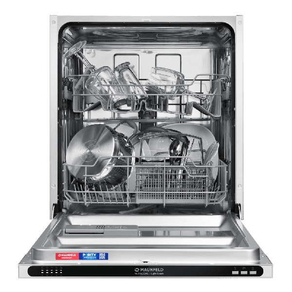MAUNFELD MLP6022A01 Light Beam — полноразмерная встраиваемая посудомоечная машина, которая избавит вас от необходимости мыть посуду вручную . Вместимость — до 12 комплектов посуды. За раз можно помыть сразу много посуды — это оценят большие семьи и те, кто любит готовить или часто принимает гостей. В машине максимально эффективно организовано внутреннее пространство. Есть удобная корзина для столовых приборов и мелкой утвари. Верхняя корзина — с изменяемой высотой установки, чтобы можно было мыть посуду разного размера и объёмов. В верхней корзине есть складные держатели для бокалов — дополнительное важное удобство. Предусмотрены несколько программ мытья для посуды разной степени загрязнения. Посудомоечная машина MAUNFELD MLP6022A01 Light Beam— помоет посуду без вашего участия, освобождая время для более приятных занятий.