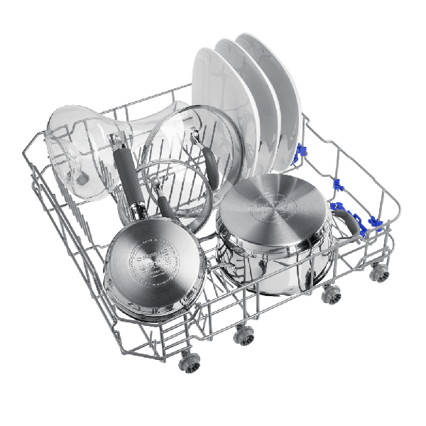В посудомоечную машину помещается много посуды. Можно накопить её в течение дня или помыть сразу всё после семейного торжества или вечеринки с друзьями. Вместимость — до 12 комплектов посуды.