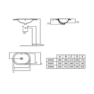 - Овальный встраиваемый умывальник, врезается как на столешницу, как и под столешницу.