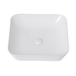 Квадратная накладная модель для монтажа на столешницу или на тумбу. Без перелива и без отверстия под смеситель.