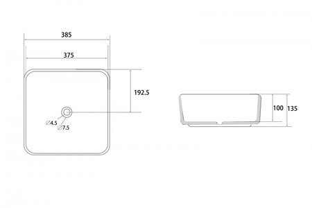 Квадратная накладная модель для монтажа на столешницу или на тумбу. Без перелива и без отверстия под смеситель.