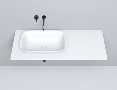 Выступающие борта сравнимы с волнами, накатывающими на берег: плавные и нежные, они деликатно выступают над столешницей, подчёркивая скульптурные объёмы раковин.