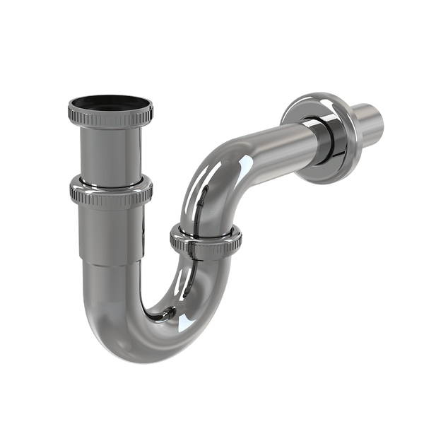 Сифон для умывальника AlcaPlast A432 u-образный, цельнометаллический, с подключением к сливу Ø32 мм. Соединяется со сливом раковины или биде накидной гайкой 5/4".