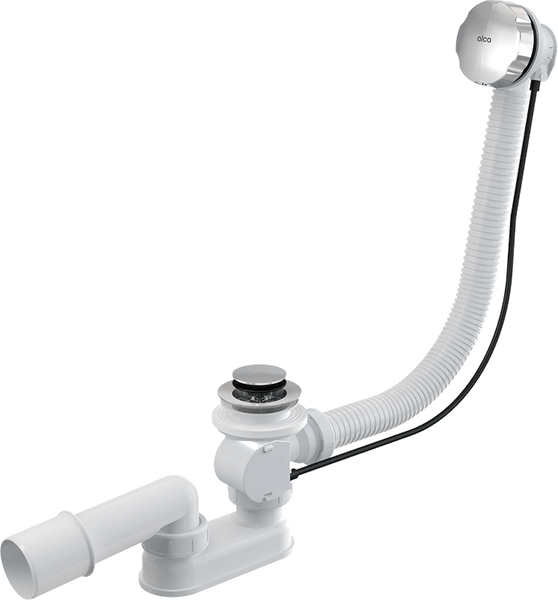 Сифон для ванны AlcaPlast A55K с полуавтоматической системой открытия и закрытия сливной пробки. Подходит для всех типов ванн. Длина шланга системы перелива - 570 мм. Выпускное отверстие - Ø52 мм.