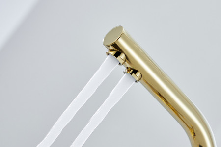 Смеситель для кухни Paulmark ESSEN (модель ES213011-G) в изысканном золотом цвете — это яркое выражение стиля, роскоши и современной функциональности. Поворотный излив обеспечивает максимальное удобство при мытье посуды, подготовке продуктов и уходе за кухней, а возможность подключения системы фильтрации питьевой воды делает использование воды безопасным и комфортным.