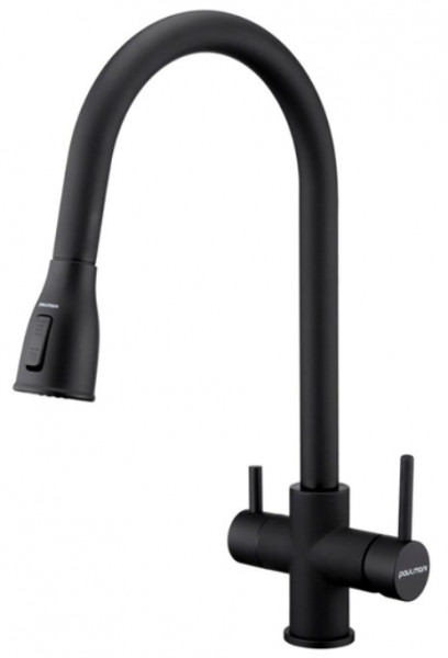 Модель оснащена выдвижным изливом с плавным ходом, поворотным корпусом для максимального удобства при мытье посуды и овощей, а также возможностью подключения системы фильтрации питьевой воды — практичное решение для современной кухни.