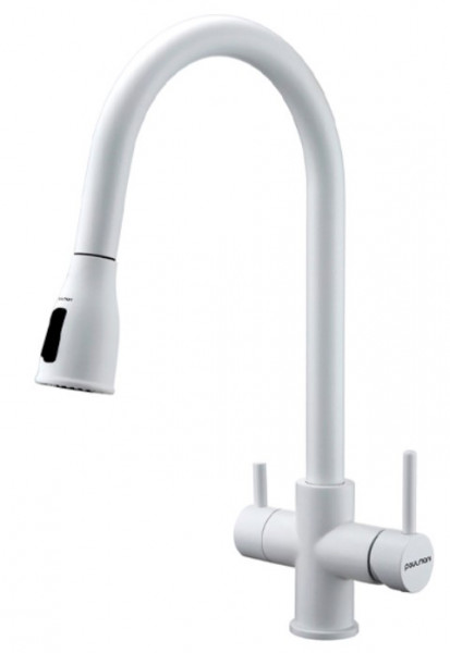 Модель оснащена выдвижным изливом с плавным ходом, поворотным корпусом для удобства при мытье посуды и овощей, а также возможностью подключения системы фильтрации питьевой воды — практичное и продуманное решение для повседневного использования.