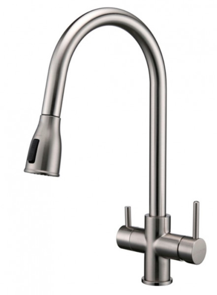 Смеситель для кухни Paulmark Lange La214212-NI (BS) в элегантной отделке «матовый никель» (Brushed Nickel) — это современное решение для тех, кто ищет гармонию между дизайном, функциональностью и долговечностью. Модель оснащена выдвижным изливом с плавным ходом, поворотным корпусом для удобной работы по всей площади мойки и возможностью подключения системы фильтрации питьевой воды.
