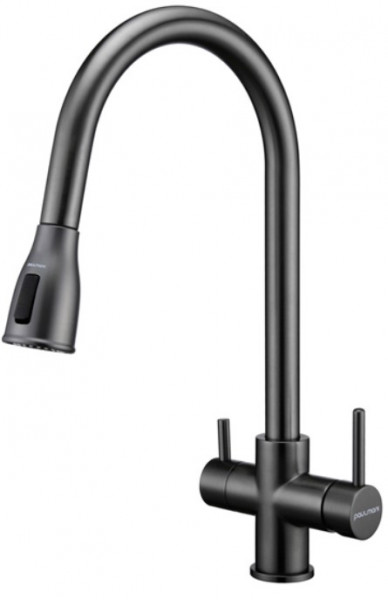 Модель оснащена выдвижным изливом с плавным ходом, поворотным корпусом для максимального удобства при мытье посуды и овощей, а также возможностью подключения системы фильтрации питьевой воды — практичное и продуманное решение для повседневного использования.
