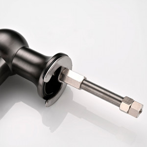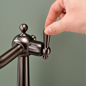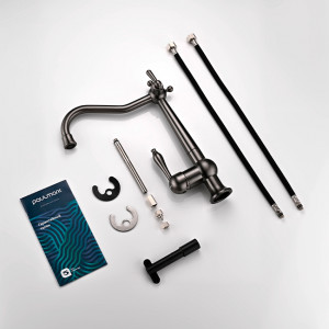 Смеситель для кухни Paulmark Retro Re213226-GM сочетает в себе элегантный ретро-дизайн и передовые инженерные решения. Модель выполнена в модном и ультрасовременном покрытии «вороненая сталь» (Gunmetal), которое придаёт смесителю благородный матово-серый оттенок с лёгким тёмным блеском. Такое покрытие не только подчёркивает индивидуальность интерьера, но и отличается высокой устойчивостью к царапинам, отпечаткам пальцев и коррозии.