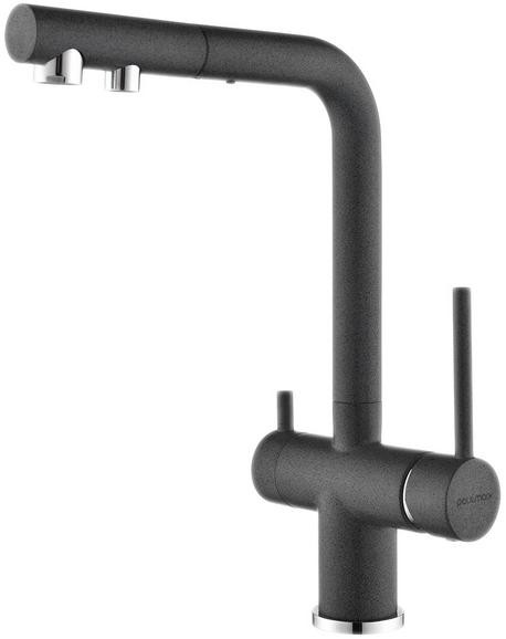 Смеситель для кухни Paulmark Serpentine SE213222-DG в насыщенном графитовом исполнении — это элегантный акцент в интерьере и высокая функциональность в одном устройстве. Благодаря выдвижному и поворотному изливу вы получаете полную свободу действий при мытье посуды, овощей или наполнении крупногабаритной кухонной утвари. Модель также предусматривает возможность подключения системы фильтрации питьевой воды — практичное и гигиеничное решение для ежедневного использования.