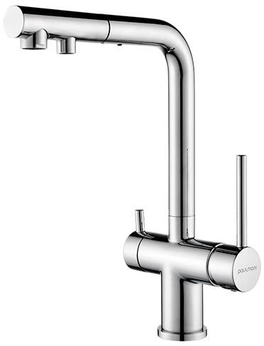 Смеситель для кухни Paulmark Serpentine SE213222-CR в глянцевом хромированном покрытии — это сочетание timeless-дизайна, передовых технологий и высокой функциональности. Выдвижной поворотный излив обеспечивает максимальную манёвренность при мытье посуды, фруктов или наполнении крупногабаритной кухонной утвари. Модель также поддерживает подключение системы фильтрации питьевой воды — практичное и гигиеничное решение для повседневного использования.