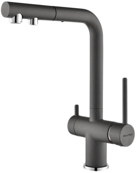 Смеситель для кухни Paulmark Serpentine SE213222-GRM в стильном исполнении «серый металлик» сочетает лаконичный дизайн и продуманную функциональность. Благодаря выдвижному и поворотному изливу вы получаете максимальную свободу движений при мытье посуды, фруктов или наполнении крупногабаритной кухонной утвари. Модель также предусматривает возможность подключения системы фильтрации питьевой воды — удобно, гигиенично и практично.