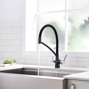 Смеситель оснащен гибким поворотным изливом, обеспечивающим максимальную мобильность и удобство при мытье посуды или наполнении крупногабаритной кухонной утвари. Конструкция предусматривает возможность подключения системы фильтрации питьевой воды — практичное решение для тех, кто ценит чистоту и безопасность воды.