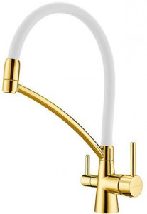 Купить смеситель для кухни Paulmark SIEGEN золото белый шланг Si213111-Gw вы можете в нашем интернет-магазине по низкой цене и выгодной доставкой по Минску и всей Беларуси. У нас работают грамотные специалисты, которые проконсультируют вас по выбору всей сантехники и комплектующих. В нашем магазине только сертифицированная продукция с заводской гарантией от производителя.