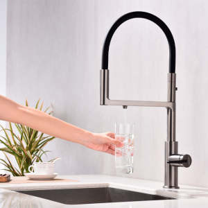 Корпус изготовлен из высококачественной латуни без содержания свинца, что гарантирует безопасность, надёжность и соответствие строгим европейским гигиеническим стандартам. Поворотный гибкий излив обеспечивает максимальную манёвренность при мытье посуды, подготовке продуктов и уходе за раковиной. Конструкция предусматривает возможность подключения системы фильтрации питьевой воды — практичное решение для ежедневного комфорта.