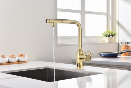 Смеситель для кухни Paulmark URBAN UR213104-G Starke-Paulmark — это воплощение современной роскоши и передовой инженерной мысли. Благородное золотое покрытие придаёт смесителю изысканный, премиальный вид, идеально вписываясь в интерьеры в стиле лофт, ар-деко или современной классики.
