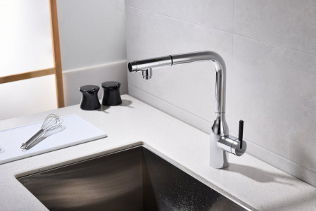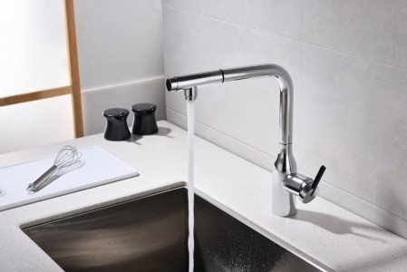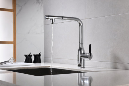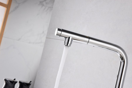 Модель оснащена удобным выдвижным поворотным изливом, который значительно расширяет зону доступа воды — идеально для мытья крупной посуды, овощей или ухода за раковиной. Дополнительная функция — возможность подключения системы фильтрации питьевой воды — делает использование смесителя ещё более практичным и безопасным для здоровья.